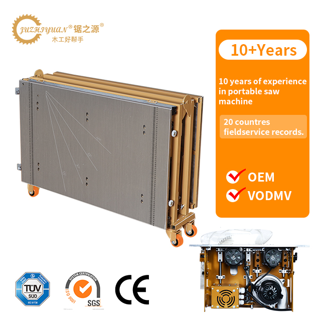 1. high precision wood working . 2. updated the precision rail . 3. double saw working , no burrs . 4. high quality ,reliable China brand -juzhiyuan. 5. stainless steel table plate . 6. easy folding and easy operate .